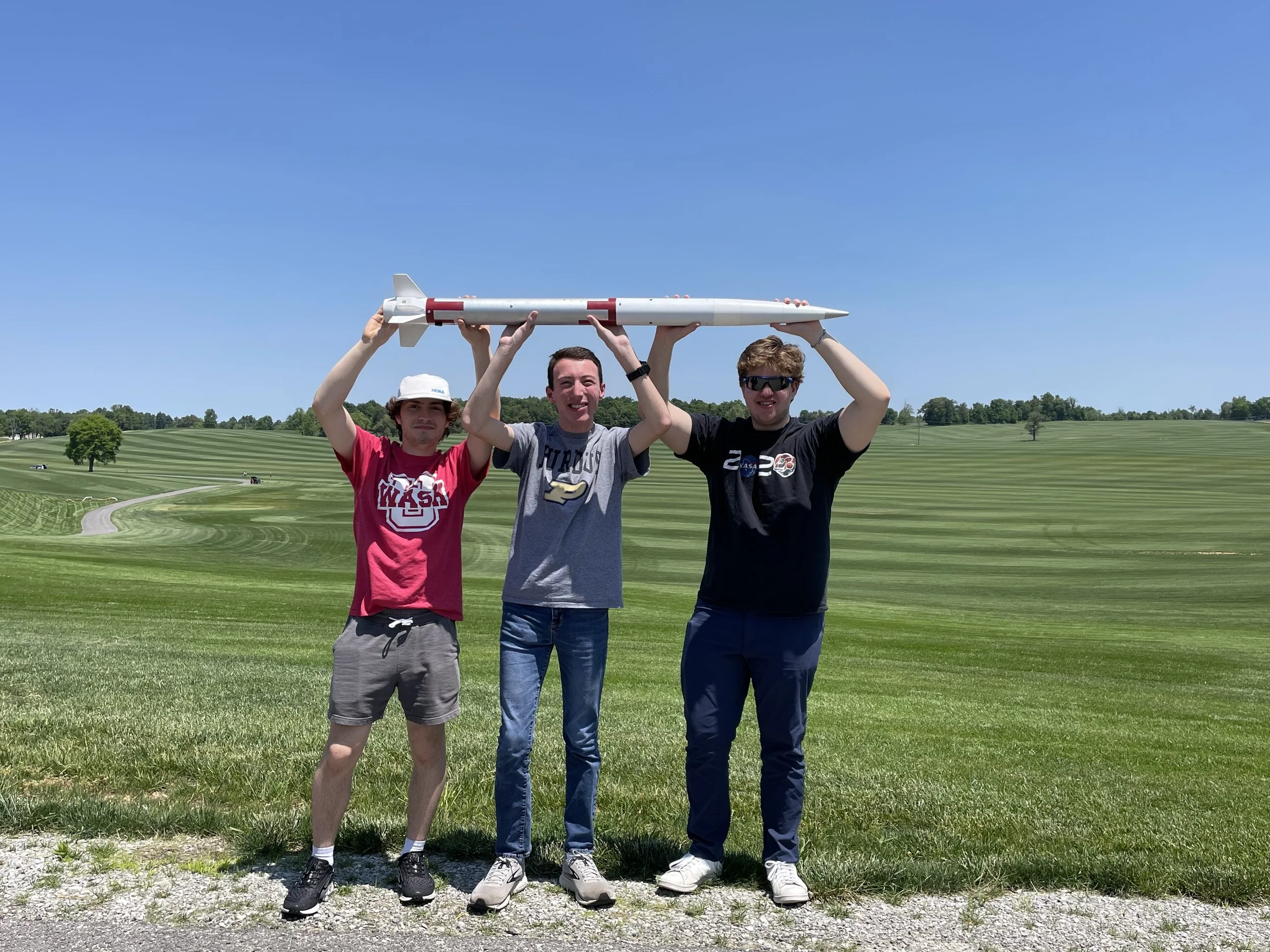 We had three spectacular launches on Saturday! Despite not being able to go up to Kentucky to fly on high-power motors, we made do with G76G motors and got great data! Our new launch site at Chickasaw Trace Park in Columbia was optimal, as it is close, has a massive field, and we are free to do almost anything we want there. The bright-green-burning G76G motors also provided a good substitute for the H238T motor that we were planning to fly on, as it is just below the power that would be classified as a high-power motor. The G76G’s still got the rockets flying high and fast and provided a perfect environment to test out the ChuteRelease and onboard sensor unit! I am looking forward to applying what I learned from these launches and analyzing the data!